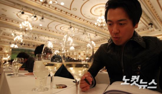 26일 오전 서울 논현동 임피리얼팰리스호텔에서 열린 ‘제14회 한국 소믈리에 대회 1차 예선’ 참가자들이 블라인드 테이스팅을 하고 있다.