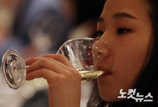 26일 오전 서울 논현동 임피리얼팰리스호텔에서 열린 ‘제14회 한국 소믈리에 대회 1차 예선’ 참가자들이 블라인드 테이스팅을 하고 있다.