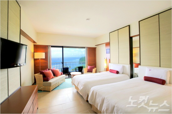 특히 니코 괌은 최근 약 6개월 간의 리노베이션을 거쳐 오션 프론트 프리미어 룸을 새롭게 오픈했다. 9~11층에 위치한 오션 프론트 프리미어 룸은 '모던 아일랜드' 콘셉트로 전체적으로 안락하고 편안한 공간 속 아일랜드 분위기가 물씬 풍긴다. 오렌지와 베이지 컬러의 조화가 눈에 띄며 가구와 벽걸이 그림, 플랫TV, 카페트, 조명 등 구석구석 세밀하게 디자인을 입혔다.