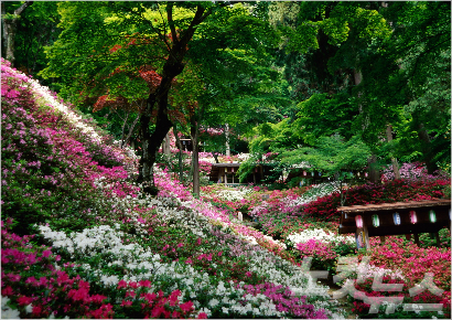 그 하나는 다이코우젠大興善寺)이라는 절이 있거든요. 거기가 사가현기야마초(基山町)라는 마을에 있는데 거기는 '진달래 절'이라는 별명이 있을 정도로 진달래가 너무 유명한 명소 입니다. 7만5천㎡ 땅에 5만 그루의 진달래가 심어져 있고요.