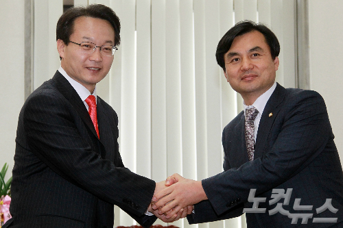 새누리당 조해진(좌측)와 새정치민주연합 안규백 원내수석부대표 (사진=윤창원 기자)