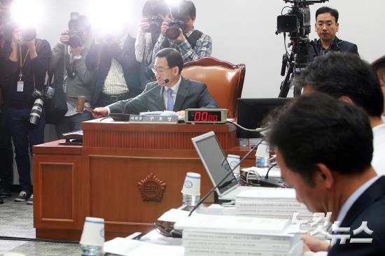 6일 오후 국회에서 열린 공무원연금개혁 특별위원회 전체회의에서 주호영 위원장이 의사봉을 두드리고 있다.
