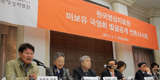 7일 오전 서울 중구 프레스센터에서 한국영상자료원 주최로 열린 미보유 극영화 발굴공개 언론공개 시사회 뒤 기자회견이 이어지고 있다. (사진=박종민 기자)