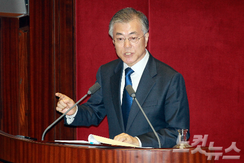 새정치민주연합 문재인 대표가 9일 오전 국회 본회의에서 교섭단체대표연설을 하고 있다. (사진=윤창원 기자)