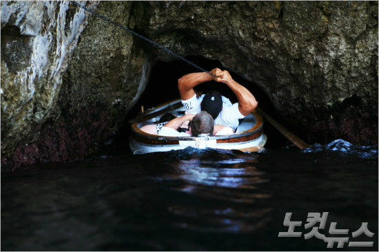 푸른 동굴 입구는 굉장히 작기 때문에 뱃사공이 노를 젓는 작은배로 옮겨 타야만 하다.