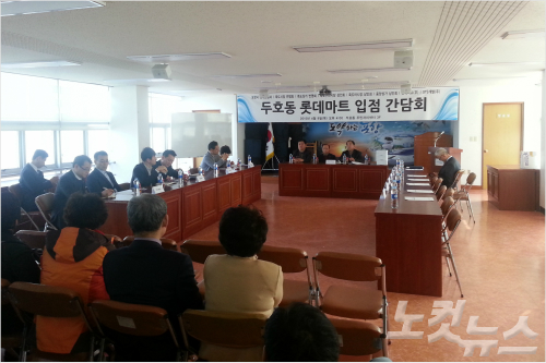 사정이 이렇자 호텔·롯데마트주민추진위원회는 9일 포항시와 시행사, 롯데마트, 죽도시장과 중앙상가 상인회 등을 초청해 두호동 주민센터에서 간담회를 개최하는 등 사태해결에 나섰다.