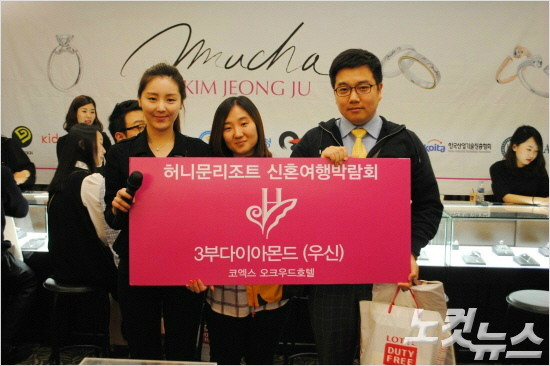 허니문리조트 뮈샤주얼리의 우신 다이아몬드3부에 당첨된 박은애(27), 한지호(31) 예비부부 (사진=소경화 기자)