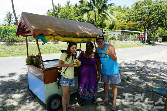 피지에도 우리나라처럼 도로변에서 판매되는 과일이나 먹거리가 있다. 그중에서 코코넛 주스는 목마름을 달래줄 수 있는 좋은 음료가 된다.