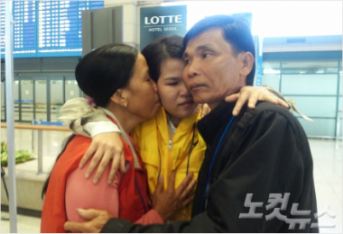 한국에 온지 3년 반 만에 부모님을 만난 베트남 출신 누엔레투씨(가운데)