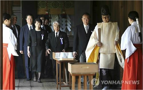 22일 교도통신에 따르면 이날 오전 일본의 초당파 의원연맹 '다함께 야스쿠니 신사를 참배하는 국회의원 모임'이 도쿄도(東京都)도 지요다(千代田)에 있는 야스쿠니신사를 단체로 방문해 참배했다.