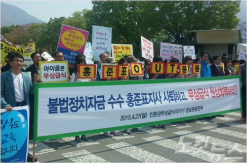 홍준표지사가 성완종 전 회장 사건으로 구속수사가 되지 않는다 할지라도 저희들은 이 문제에 대한 근본적 자세의 변화가 없다면, 무상급식 중단에 대한 근본적인 변화가 없다면 저희들은 주민소환을 할 예정입니다.