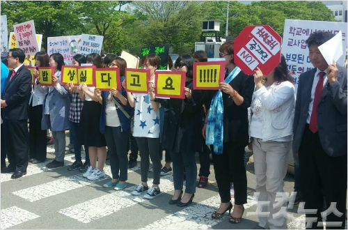 그리고 매주 수요일같은 경우에는 결정적으로 지역마다 다양한 활동을 벌이고 있구요. 또 학부모들과 학생들이 참여하기 좋은 주말에는 여러 형태의 학부모대회가 열려지고 있고 오는 5월5일에도 범도민 학부모대회가 각 지역마다 열릴 예정이고 이 문제 해결을 위해서 계속적으로 활동들을 하고 있는 실정입니다.