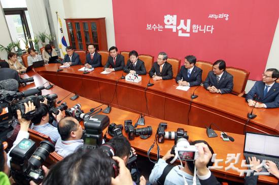 공무원연금개혁 논의를 위해 29일 국회에서 새누리당 유승민 원내대표, 원유철 정책위의장, 새정치민주연합 우윤근 원내대표, 강기정 정책위의장 등이 참석한 여야 4+4회동이 열리고 있다.