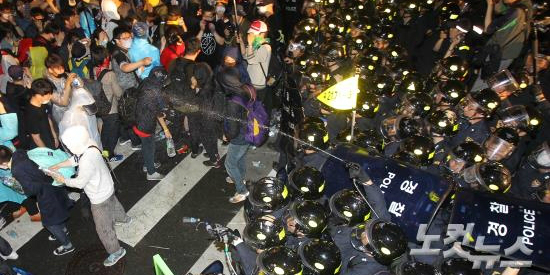 ▶ 지난 주말 시위 진압에 최루액 물대포가 등장해 비판이 일고 있군요?
