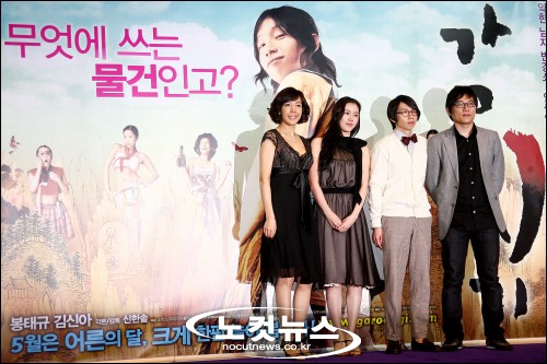 [BestNocut_R]22일 오후 서울 삼성동 코엑스 메가박스에서 열린 영화 ''가루지기''(감독 신한솔, 제작 프라임엔터메인먼트) 언론시사회에서 (왼쪽부터) 주연배우인 전수경, 김신아, 봉태규와 신한솔 감독이 취재진을 향해 포즈를 취하고 있다.