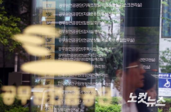 여야가 국회 본회의에서 공무원연금법 개정안을 처리할 예정인 가운데 6일 오전 서울 강남구 역삼동 공무원연금공단에서 시민들이 지나가고 있다.