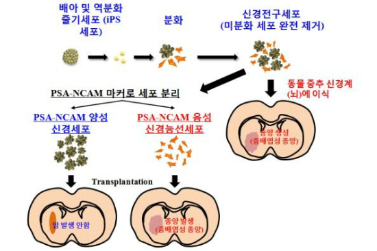 이에 따라 김 교수팀은 PSA-NCAM과 결합하는 '필터'를 이용해 분화된 신경세포에서 신경능선세포를 완전히 제거할 수 있었다.