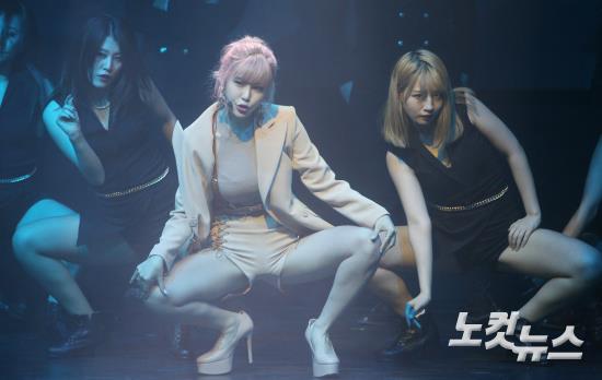 1년 만에 솔로로 컴백하는 걸그룹 시크릿 멤버 전효성이 7일 오전 서울 서교동 예스24 무브홀에서 첫 미니앨범 ‘FANTASIA(판타지아)’발매기념 쇼케이스에서 신곡을 선보이고 있다.