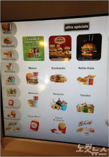 프랑스에서도 물론 맥도날드를 만날 수 있다. 프랑스의 맥도날드에는 고객이 직접 주문을 할 수 있는 '온라인 오더' 단말기가 배치돼 있어 보다 편리하다. 프랑스에서 영어가 안통할 경우 이 단말기를 이용해 언어 설정 후 주문이 가능하다. 한국어는 없지만 영어와 독일어, 에스파냐어, 이탈리아어를 선택할 수 있다.