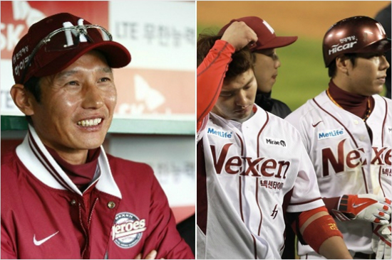 '지난 것은 경험만 빼고 모두 잊어라' 넥센 염경엽 감독(왼쪽)과 지난해 한국시리즈에서 아쉽게 삼성에 패권을 내준 뒤 박병호(가운데)-강정호 등 선수들이 그라운드를 빠져나가는 모습.(자료사진=넥센, 노컷뉴스)