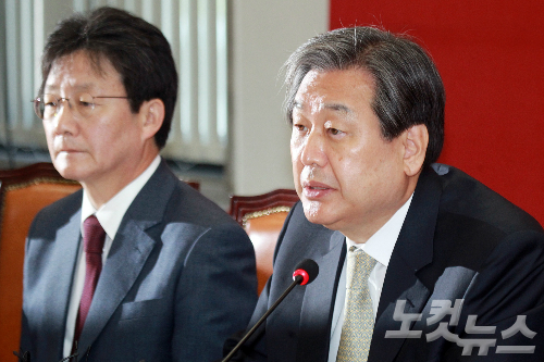 새누리당 김무성 대표(오른쪽)와 유승민 원내대표 (사진=윤창원 기자)