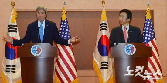 윤병세 외교부 장관과 존 케리 미국 국무장관은 18일 서울에서 회담을 가진 뒤 공동기자회견을 통해 한 목소리로 대북 강경론을 피력했다.