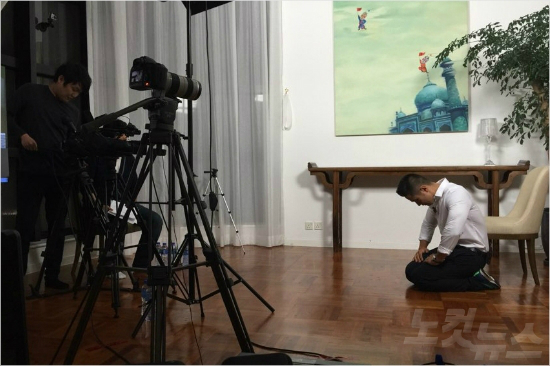 홍콩에서 인터넷 생방송 후 고개를 숙인 채 말없이 서 있는 유승준 씨.
