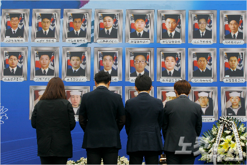 천안함 피격 사건 4주기인 26일 오전 자유총연맹 주최로 서울역 광장에 마련된 분향소에서 학생들이 희생자들을 추모하고 있다. 송은석기자