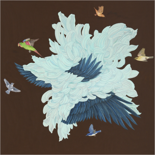 윤정원의 국화는 때로는 별(星)로, 때로는 새(鳥)로 변화되어 새로운 생명체로 인식되기도 한다. 그러나 국화의 도상적 특징은 잃지 않는다.