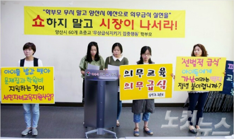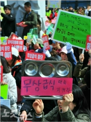 ◆심은숙 : 솔직히 말해서 학교측이나 어디에서도 미리 사전에 어떠어떠한 이유로 해서 이런 식으로 무상급식이 전면 금지 되었다고 하는 저희들을 이해시킬 수 있는 공문을 받은 적도 없었고요. 그러다보니까 솔직히 말해서 식상한 말이긴 하지만 왜 잘사는 강남도 무상이 되는데 경남 같은 경우에는 100명 미만인 학교도 많거든요. 그런 경남에서 이런 일이 이뤄졌을까 하는 의아한 생각도 들고 조금 당황스러웠습니다.