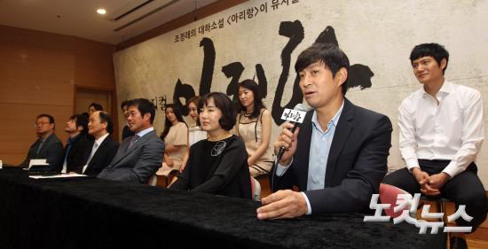 9일 오전 서울 신당동 충무아트홀에서 진행된 뮤지컬 ‘아리랑’ 기자간담회에 참석한 배우 서범석이 소감을 밝히고 있다.