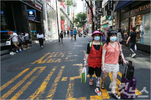 중동호흡기증후군(메르스)에 대한 불안이 확산되고 있는 10일 오후 서울 중구 명동거리가 메르스의 여파로 평소보다 한산한 모습을 보이고 있다. (윤성호 기자)