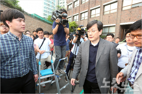 지난해 6·4 지방선거 당시 지상파 방송 3사의 출구조사 결과를 무단으로 사용한 혐의를 받고 있는 JTBC 보도부문 손석희 사장이 16일 오후 서울지방경찰청 국제범죄수사대에서 소환 조사를 마친 후 나서고 있다. 윤성호기자