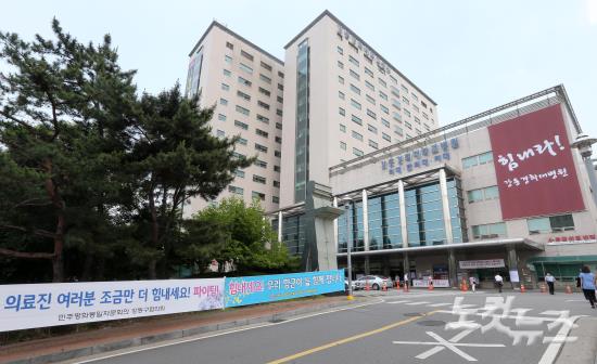 지역사회 응원메시지 현수막 걸린 강동경희대병원 입구