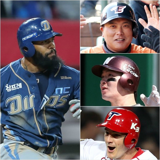 '으리으리하구나' 2015 타이어뱅크 KBO 리그 올스타전 나눔 올스타 1루수 부문에서 경합을 벌이고 있는 NC 테임즈(왼쪽부터 시계 방향), 한화 김태균, 넥센 박병호, KIA 필.(자료사진=각 구단)