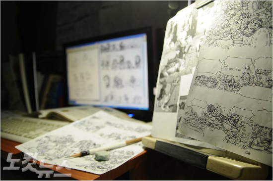 ◆ 이길우> 성격에 대한 구상은 어느 정도 자리를 잡았지만 성경을 만화로 만든다는 부분에 있어서는 어디서 부터 어떻게 시작해야 할지 막막했죠. 그런데 때마침 글을 담당했던 김동순 작가가 입사하게 됐습니다. 김동순 작가는 아버지께서 목사님이셨고 신앙심도 굉장히 깊었습니다. 제대로 된 성경 만화를 만들어보자고 했을 때 김동순 작가도 기다렸다는 듯이 자기도 평소에 그런 일을 해보고 싶었다고 해서 시작하게 됐습니다. 의욕적으로 시작했습니다 만은 생각처럼 쉬운 일이 아니었습니다. 많은 시행착오도 있었고, 사실 저희들 능력만으로 하기에는 너무 능력이 부족했습니다.