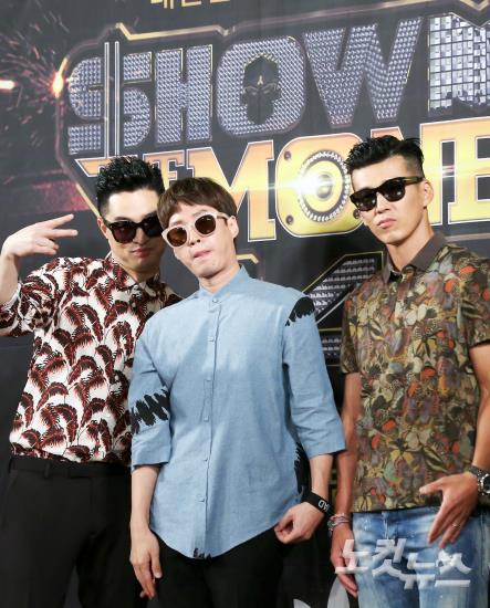 가수 션(왼쪽부터), 타블로, 지누가 24일 오후 서울 여의도 63컨벤션 주니퍼룸에서 열린 Mnet '쇼미더머니4' 제작발표회에서 포즈를 취하고 있다. 오는 26일 밤 11시 첫 방송되는 쇼미더머니4는 국내 유일의 힙합 서바이벌 프로그램이다.