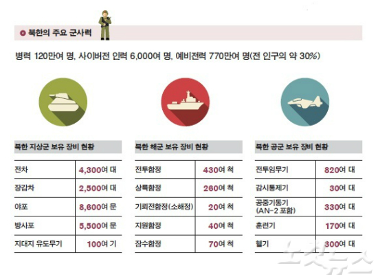 여기다 세계 최강의 군사력을 보유한 미군의 전력까지 남한에 주둔하고 있다는 점에서 남북한 군사력 차는 날이 갈수록 커지고 있다는 평가다.