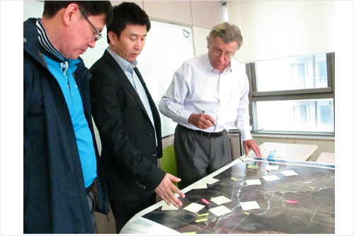 정광일 씨(왼쪽)가 북한 수용소 위성사진을 확인하는 모습(사진=RFA)