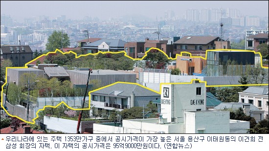 이건희 삼성그룹 회장의 이태원동 자택은 작년에 이어 올해도 국내에서 최고 비싼 집으로 산정됐다. 3년 연속 최고가다.