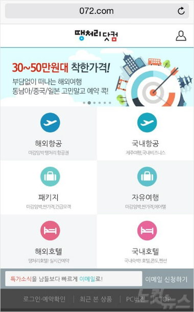 땡처리닷컴, 실시간 예약 가능한 모바일 웹 사이트 오픈