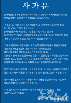 이어 "언론보도 내용과 달리 저희 송학식품은 대장균이 검출된 제품을 지방자치단체의 통보에 따라 전량 수거·폐기했으며, 대장균이 검출된 제품을 유통시킨 사실이 없다"고 덧붙였다.