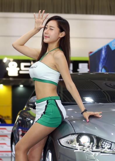 9일 오전 서울 강남구 코엑스에서 열린 대한민국 자동차 튜닝.애프터마켓 전문 전신회인 '2015 서울오토살롱'에서 레이싱 모델 태희가 포즈를 취하고 있다.