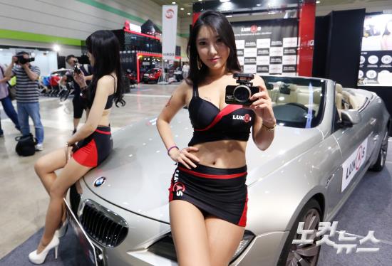 9일 오전 서울 강남구 코엑스에서 열린 대한민국 자동차 튜닝.애프터마켓 전문 전신회인 '2015 서울오토살롱'에서 레이싱 모델 윤체리가 포즈를 취하고 있다.