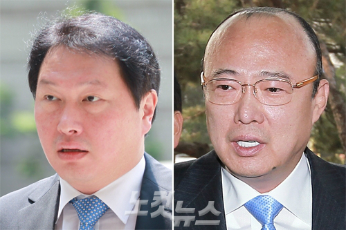 왼쪽부터 최태원 SK그룹 회장과 김승연 한화그룹 회장 (자료사진)