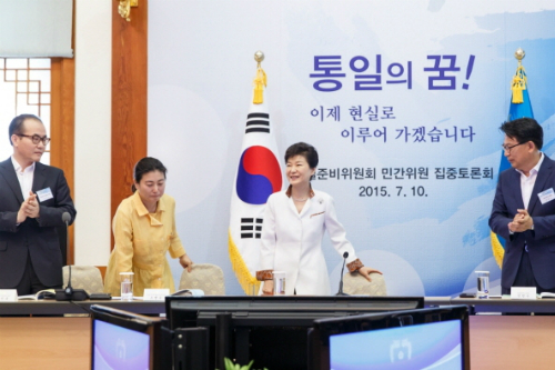 박근혜 대통령이 지난 10일 오전 청와대에서 열린 통일준비위원회 민간위원 집중토론회에 참석했다. (사진=청와대 제공)