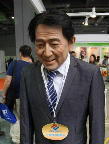 중국 상하이의 한 전시장에 아베 신조(安倍晋三) 일본 총리의 모습을 한 로봇이 등장해 눈길을 끌었다.