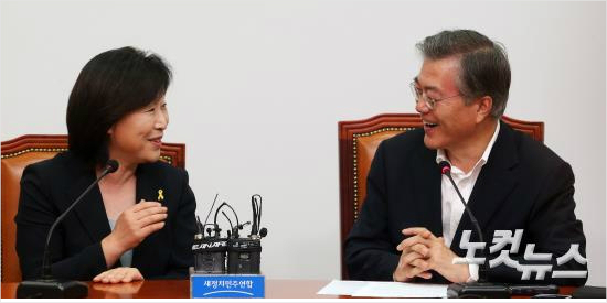 문재인 대표와의 대화에서는 정례협의를 약속하는 등 화기애애한 분위기가 이어졌다.
