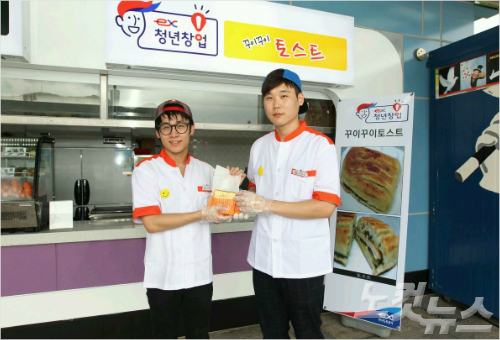 진영휴게소(부산방향) 꾸이꾸이 토스트 (사진=마병훈 학생 (왼쪽) 제공)