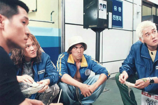가운데 모자를 쓰고 있는 인물이 배우 유오성이 연기한 '무대포' (사진=주유소 습격사건 스틸컷)